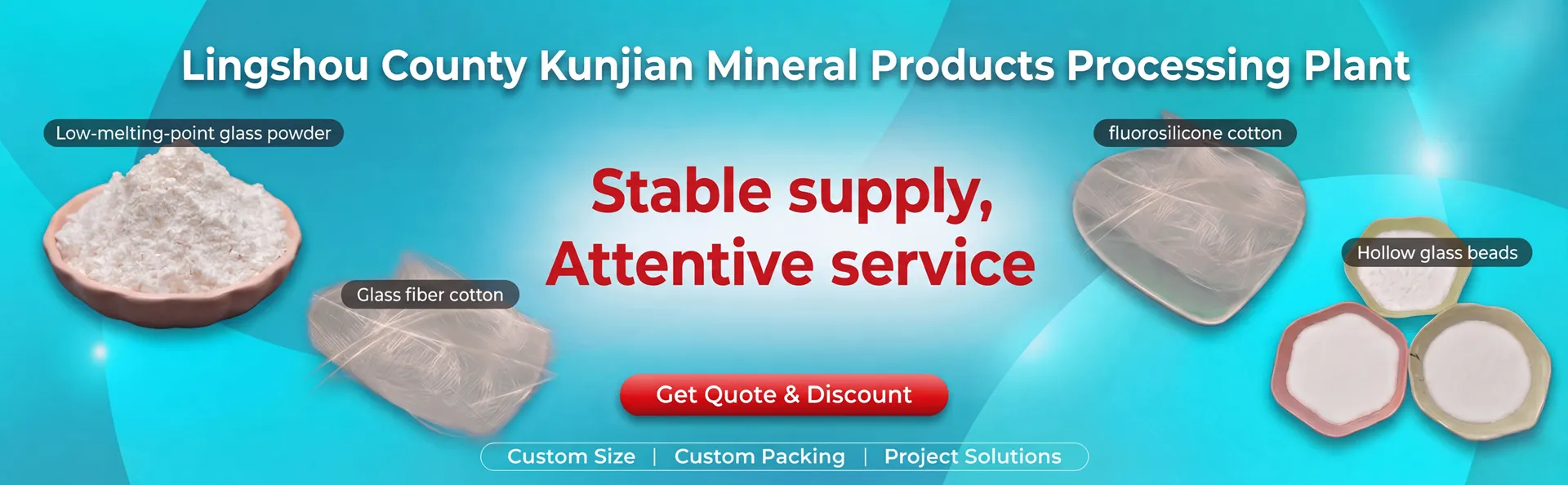 Lingshou County Kunjian Mineral Products Processing Plant is located in Lingshou County, Shijiazhuang City, Hebei Province. It is a professional powder processing enterprise integrating R&D, production, and sales. The company possesses large-scale production capacity and a strict quality control system. Its main products include low-temperature glass powder, hollow glass microspheres, and glass fiber cotton, all of which feature stable performance and high quality, and are widely used in industries such as building materials, coatings, insulation, and composite materials. Leveraging solid technical expertise, a reliable supply chain, and efficient service responsiveness, the company continuously provides cost-effective total solutions to the market, earning customer trust through its proven strength.
